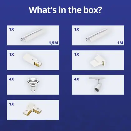 | Fabrikantnaam | Complete L shaped 1-Phase Track Set White incl. 4x Spot fixture + GU10 2700K 3W Dim - 1 x 1.5 meters | |