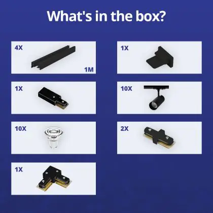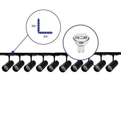 Bright Choice Complete Set 1-Fase Rail L 2 x 2 Meter Zwart | incl. 10x Spot + GU10 2700K 3W Dimbaar + Eindkap, Voedingsconnector en L -Verbindingsstuk