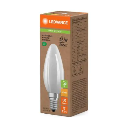 Ledvance LED Classic E14 Kaars Filament Mat 1.2W 255lm - 827 Zeer Warm Wit | Vervangt 25W