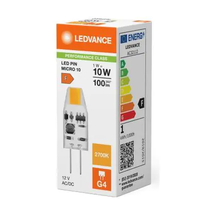 Ledvance LED Pin Micro 12V G4 Helder 1W 100lm - 827 Zeer Warm Wit | Vervangt 10W