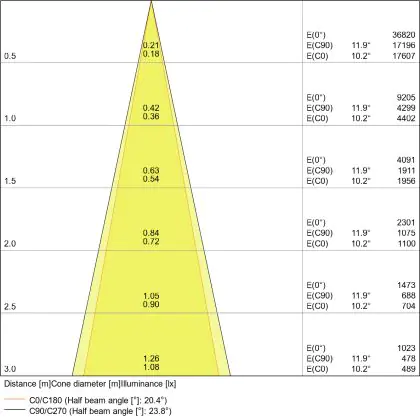 De gradenbundel geeft informatie over hoe breed het licht wordt uitgestraald. Dit zit tussen de 0 en 360 graden (D). Hoe kleiner de hoek, hoe specifieker de lichtbundel is. Over het algemeen is een smalle gradenbundel perfect voor sfeer- of accentverlichting, terwijl een brede gradenbundel ideaal is om grote oppervlaktes te verlichten.