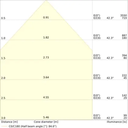 ![]() De kleurcode is een combinatie van de kleurweergave (CRI) en lichtkleur (Kelvin). Het eerste getal is de kleurweergave (1 = zeer slechte kleurweergave, 9 = maximale kleurechtheid). Het tweede en derde cijfer betreft de lichtkleur. Een lamp met kleurcode 830 heeft bijvoorbeeld een goede kleurweergave en straalt een warm wit licht uit (3000K), waar een lamp met de kleurcode 940 een uitstekende CRI heeft en een koel wit licht (4000K) uitstraalt. |